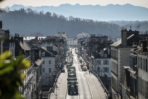 À Pau, ce samedi 27 janvier 2024, ce sont les éleveurs de l?Association des éleveurs et transhumants des vallées béarnaises (AETVB) qui ont mené une opération escargot avec l'appui de trente tracteurs derrière une banderole « L?écologisme tue le pastoralisme ». Ils ont ensuite rejoint le blocage du rond point d'accès à l'A64 et les agriculteurs de la FDSEA.