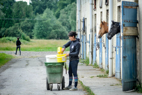 Illustration of an equestrian centre in Béarn. In the stable, the horses each have their own box and are managed by the grooms or equine carers.