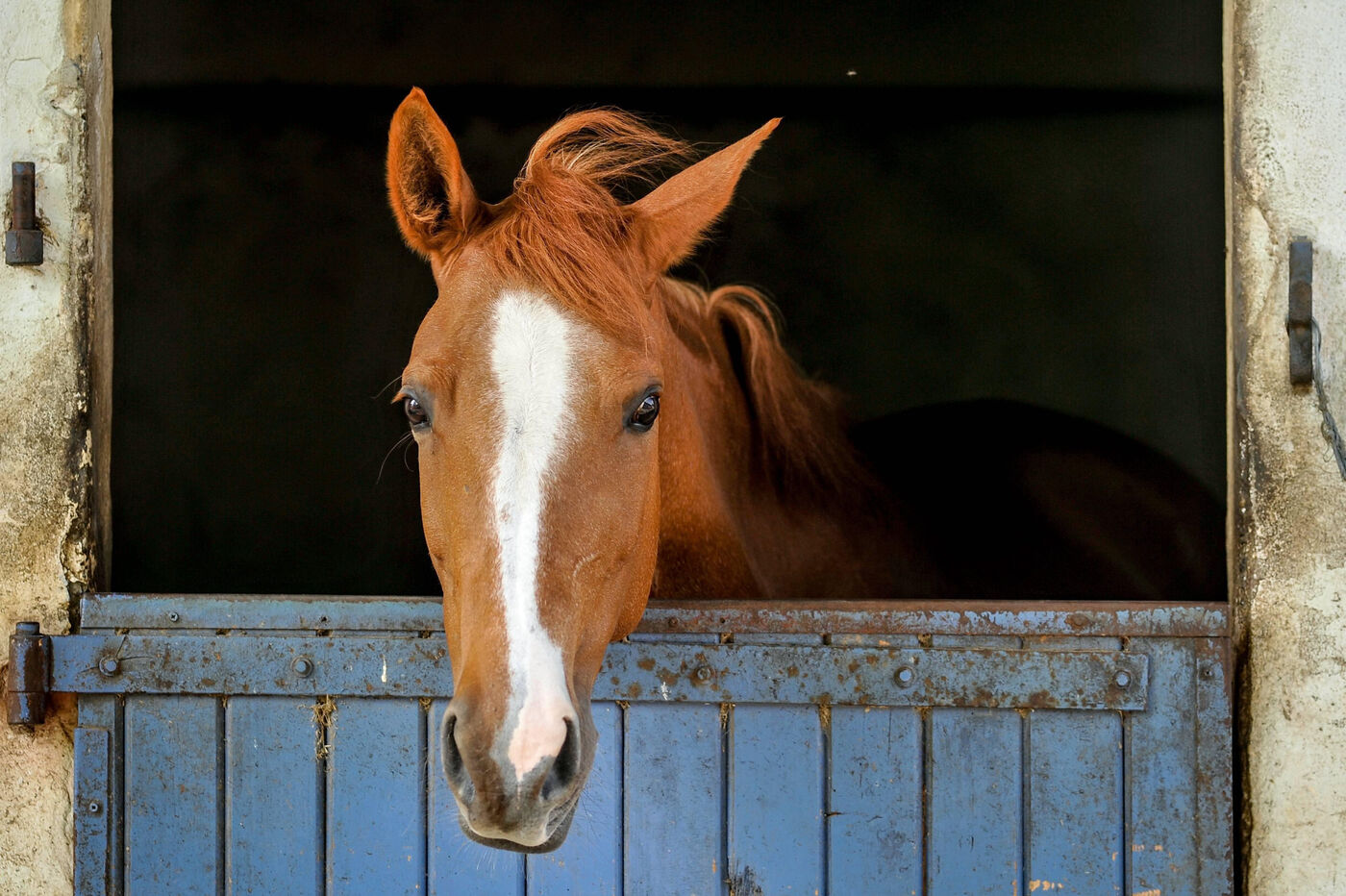 Images d'illustration d'un centre équestre du Béarn. Dans l'écurie les chevaux ont chacun leur box et sont gérés par les palefreniers ou les soigneurs équins.