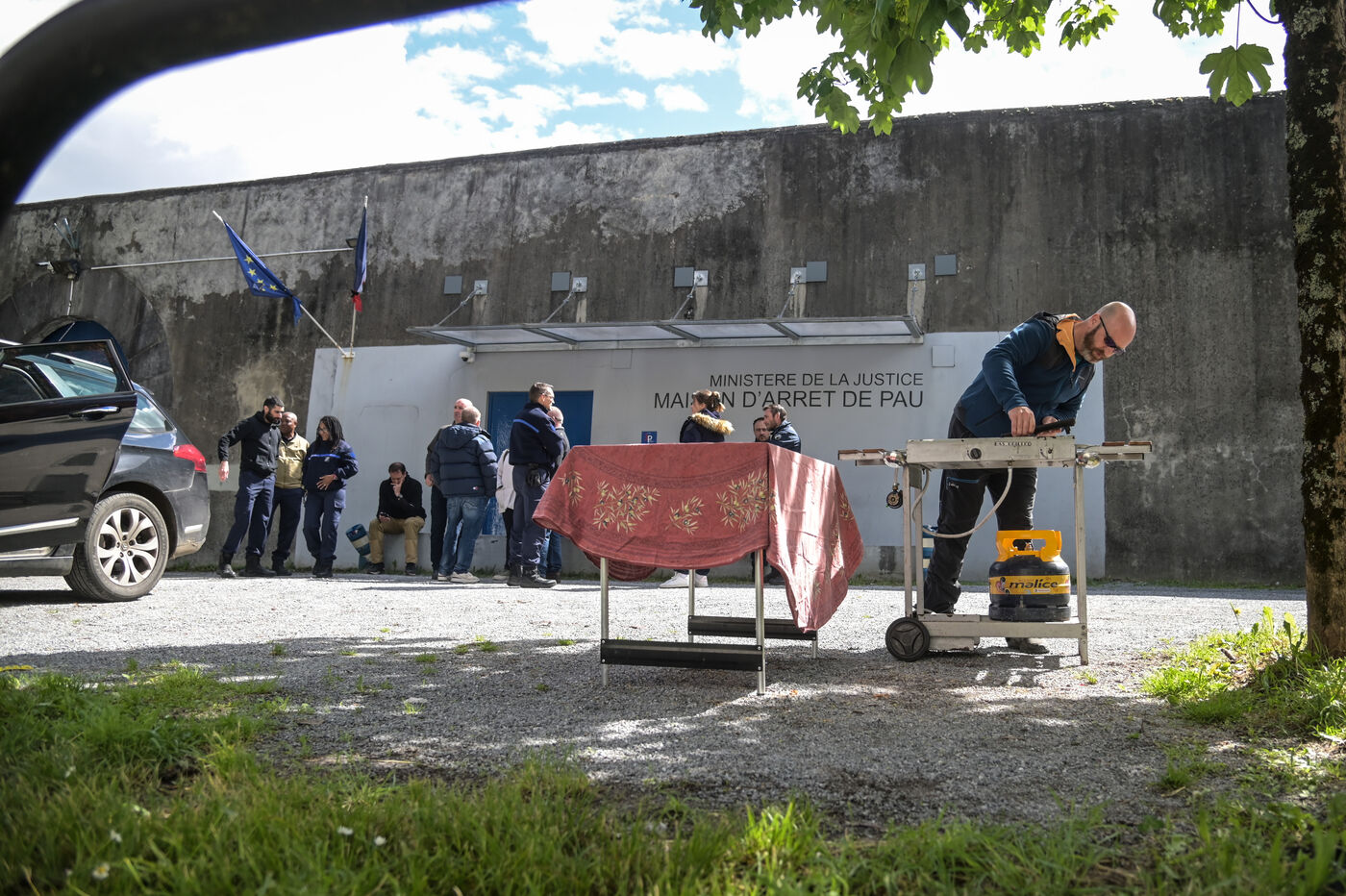 Au lendemain du sanglant guet-apens d'un fourgon de la pénitentiaire au péage d'Incarville, dans l'Eure, de nombreuses mobilisations sont organisées ce mercredi matin devant les prisons en France. Des agents de la prison de Pau ont observé une minute de silence dans les murs de la maison d'arrêt avant de se mobiliser devant l'entrée pour un déjeuner improvisé.