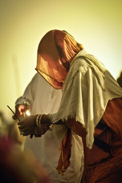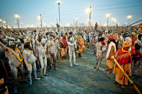 The Maha Kumbh Mela 2013, celebrated in Allahabad, is a unique convergence of millions of Hindu pilgrims who come to purify themselves in the sacred waters of the Triveni Sangam, the confluence of the Ganges, the Yamuna and the mythical Sarasvati. Emblematic scenes show Sadhus covered in ashes, symbolizing renunciation, leading ritual processions. The devotees, immersed in fervent prayers and offerings, illustrate the intense spirituality of this event. This gigantic gathering, marked by sacred baths, is a moment of devotion, faith and cultural exchange, bringing together all strata of Indian society.