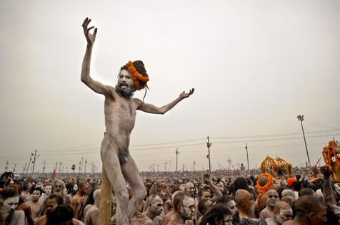 Le Maha Kumbh Mela 2013, célébré à Allahabad, est une convergence unique de millions de pèlerins hindous venus se purifier dans les eaux sacrées du Triveni Sangam, la confluence du Gange, de la Yamuna et de la mythique Sarasvati. Des scènes emblématiques montrent des Sadhu recouverts de cendres, symbolisant le renoncement, menant des processions rituelles. Les fidèles, plongés dans des prières ferventes et des offrandes, illustrent la spiritualité intense de cet événement. Ce rassemblement gigantesque, marqué par des bains sacrés, est un moment de dévotion, de foi et d'échange culturel, réunissant toutes les strates de la société indienne.