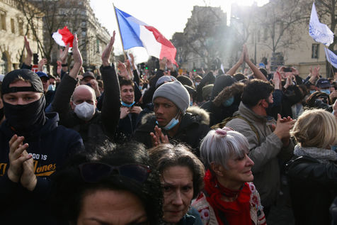 Les militants de Génération Identitaire se sont rassemblés à Paris, place Denfert-Rochereau pour protester contre la dissolution de leur mouvement décreté par Gerald Darmanin.