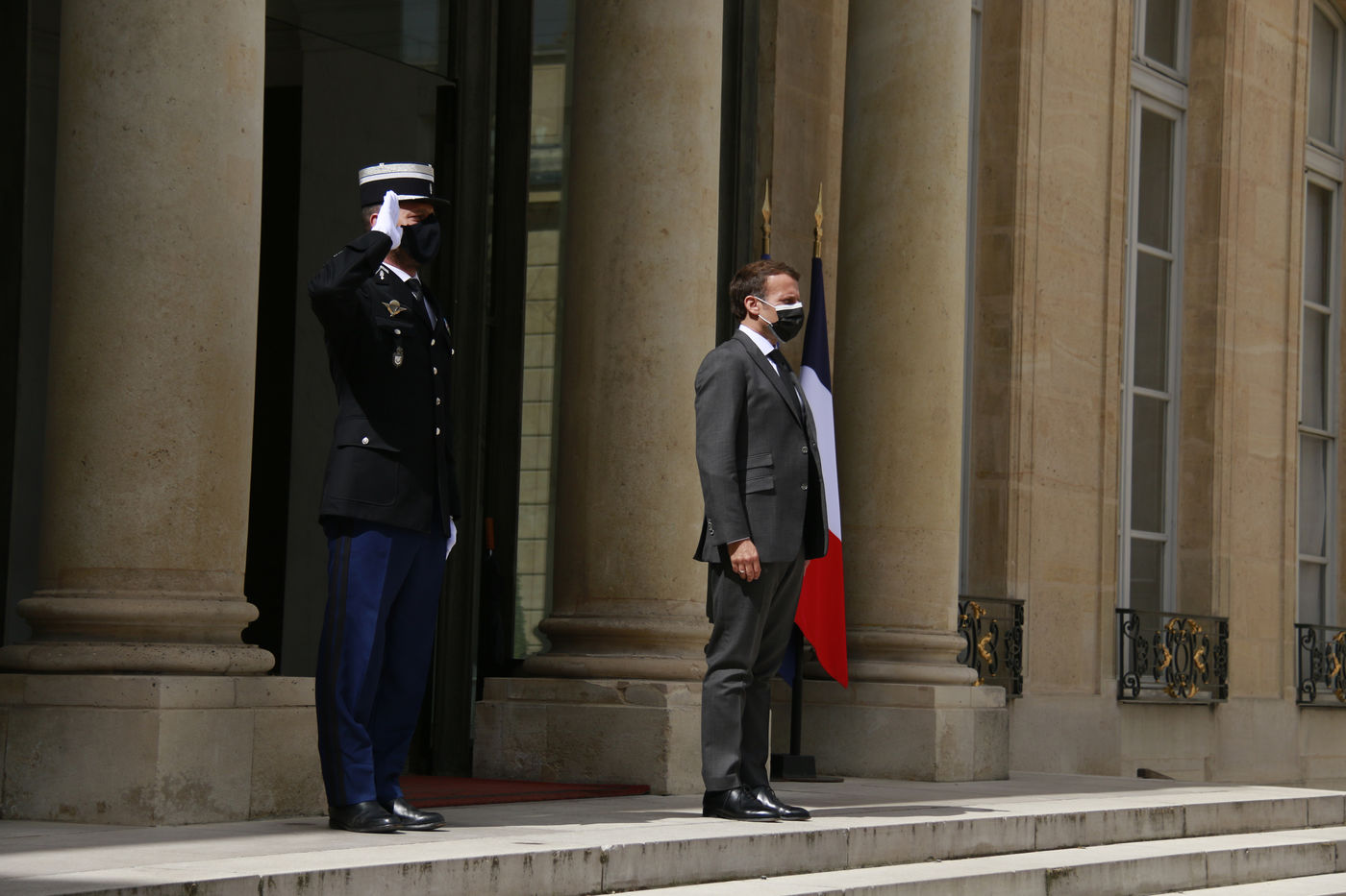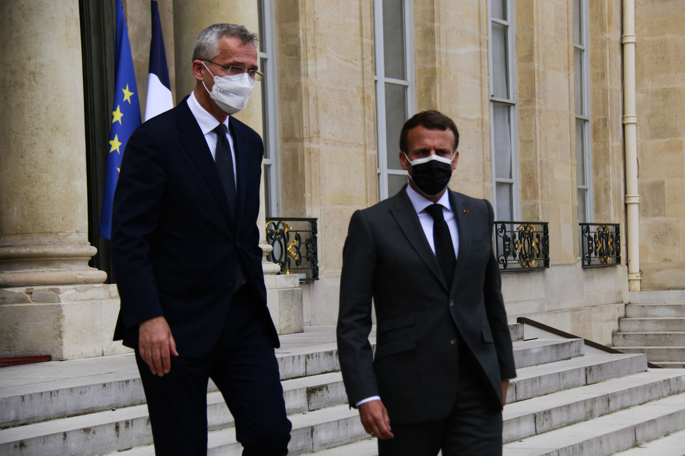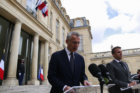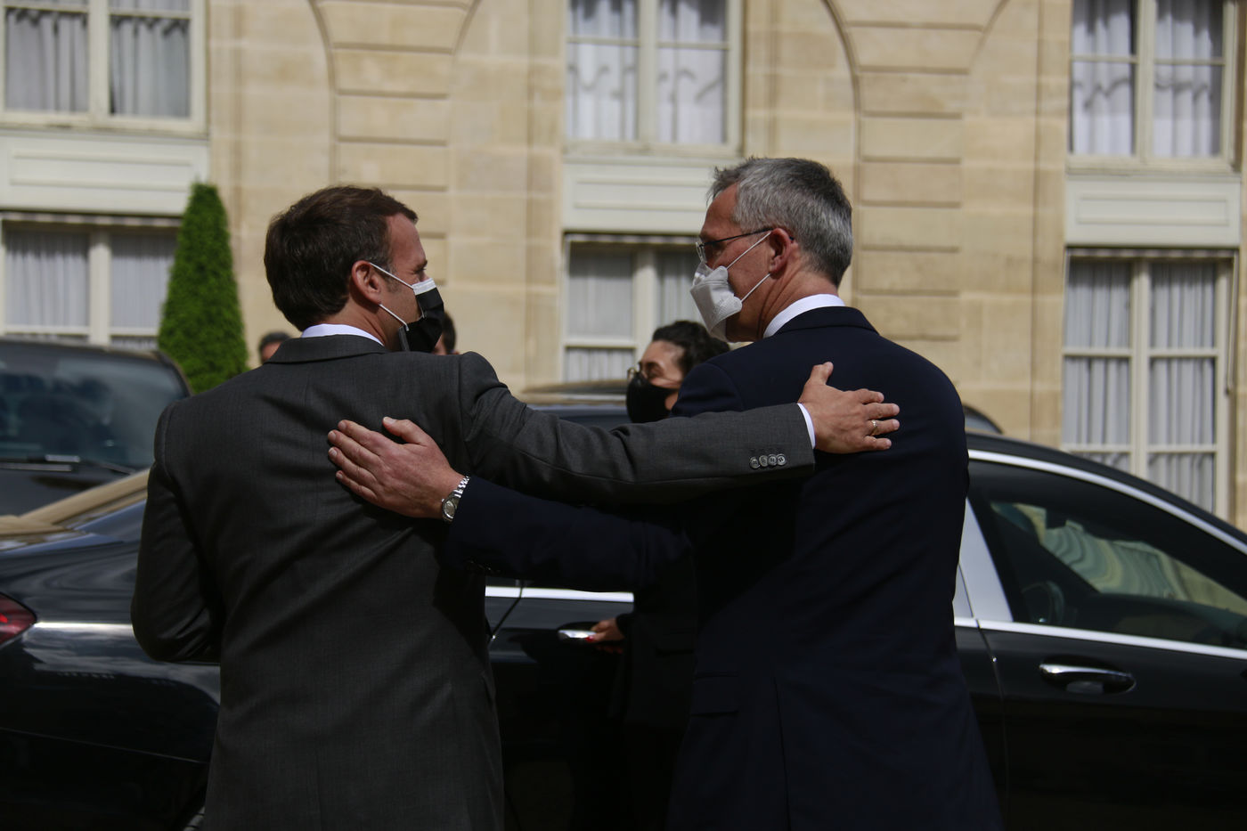 President Emmanuel Macron receives NATO Secretary General Jens Soltenberg at the Elysée Palace in preparation for the NATO summit which will take place in June.