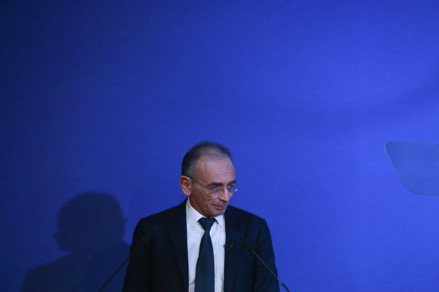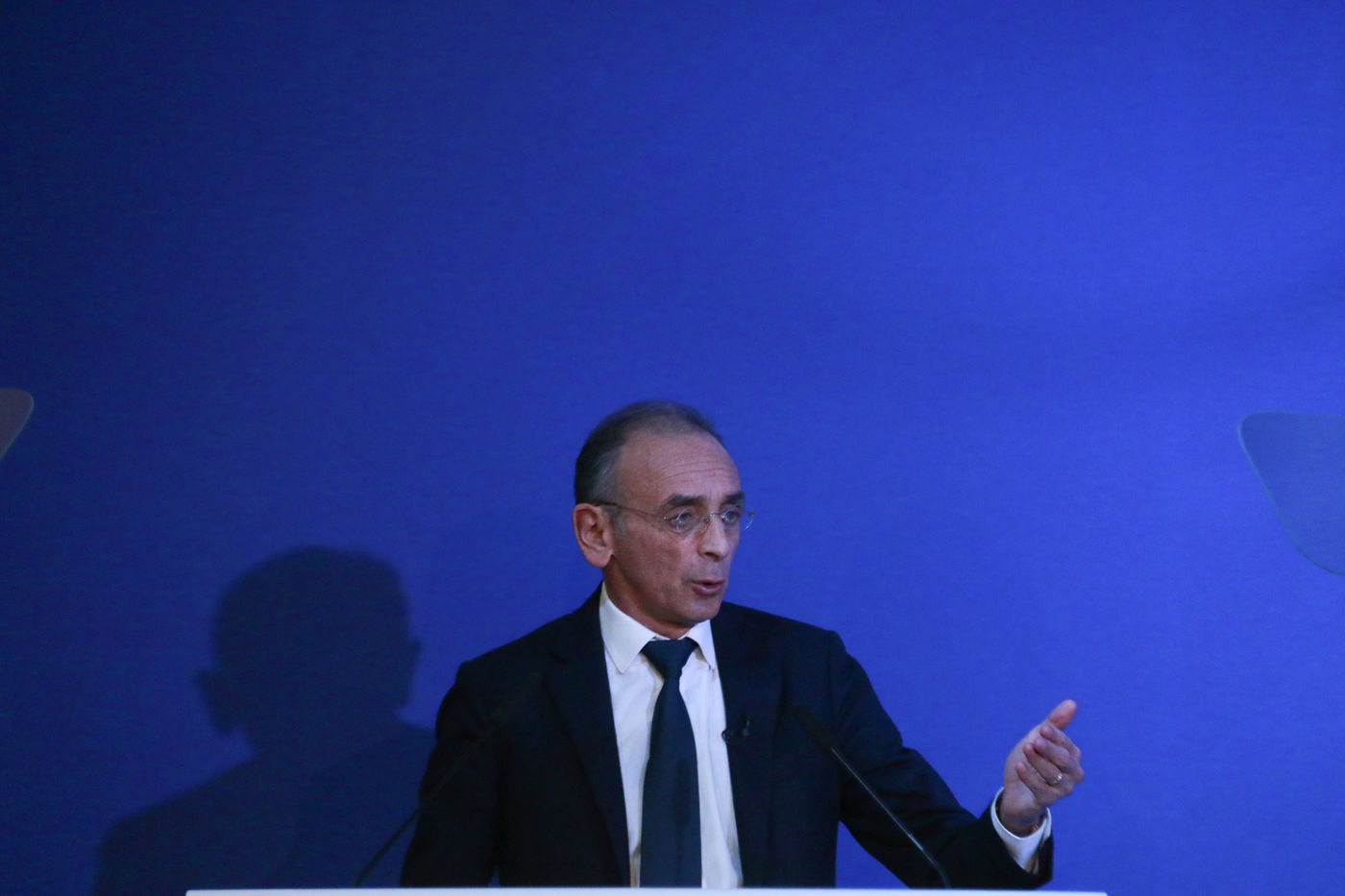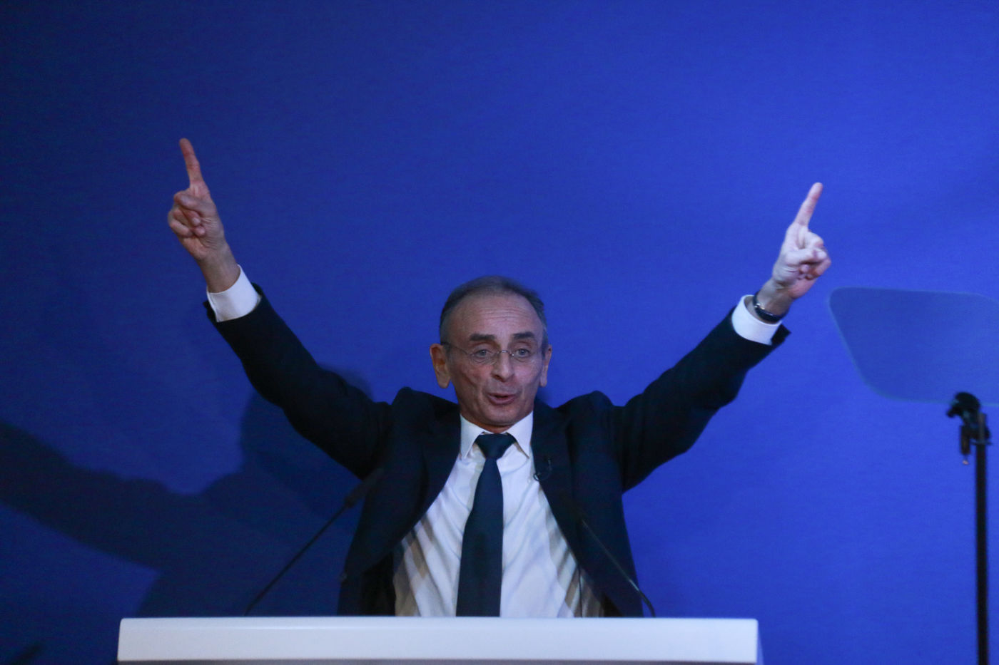 Reconquete candidate Eric Zemmour gives a speech to his activists on Women's Day through the collective "Women with Zemmour" on March 8, 2022 in Saint-Mande.
