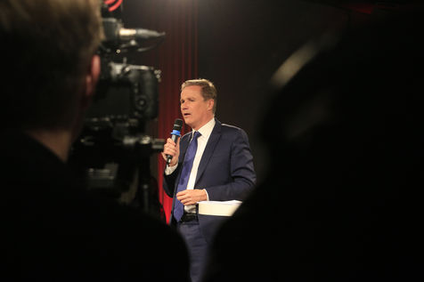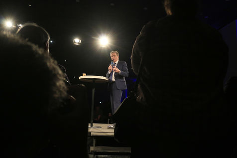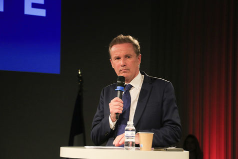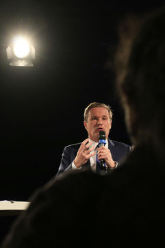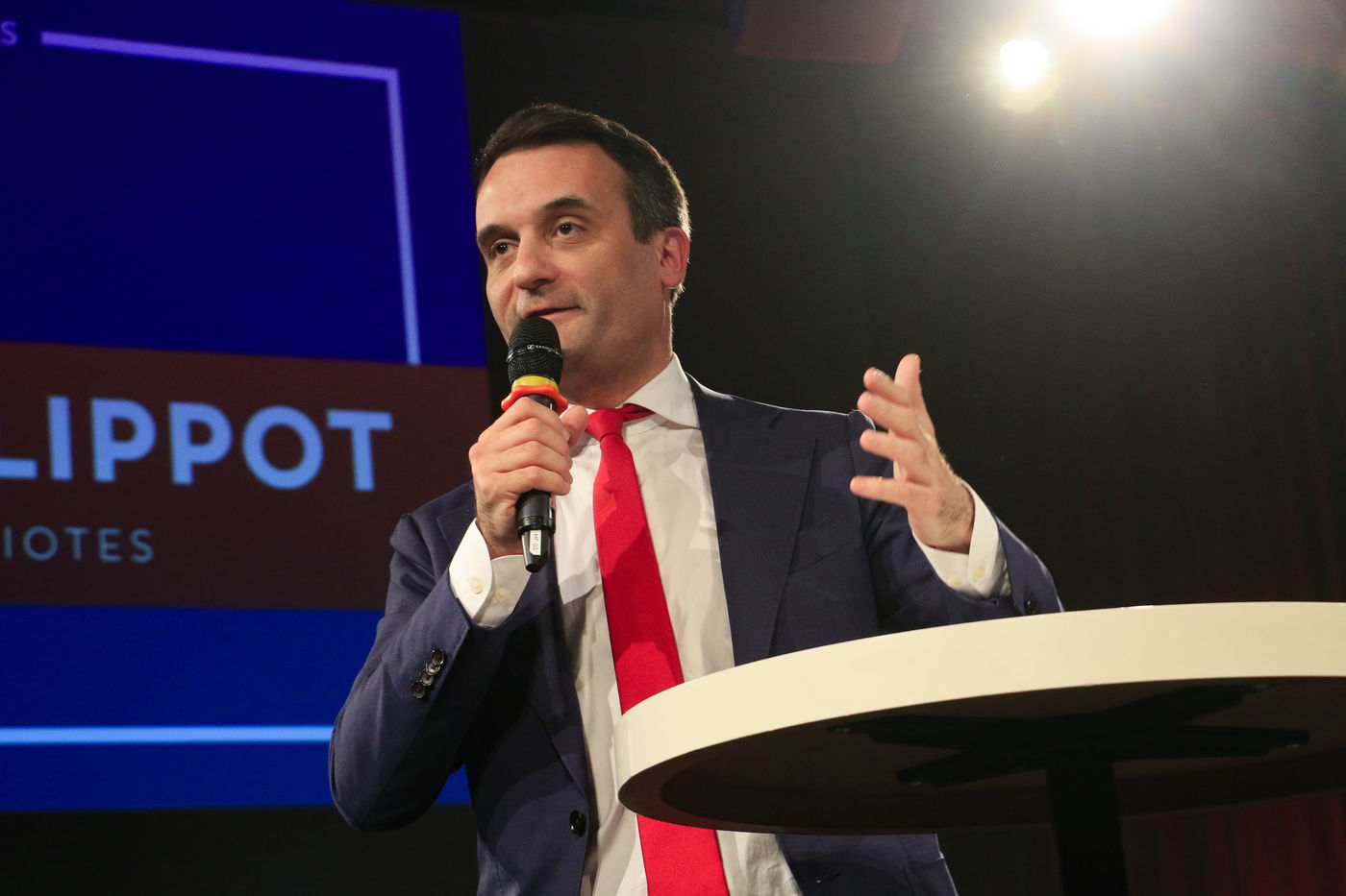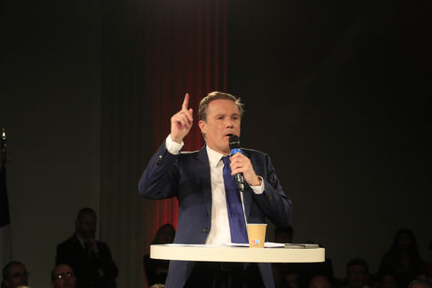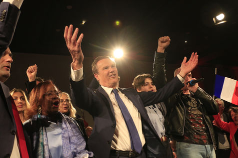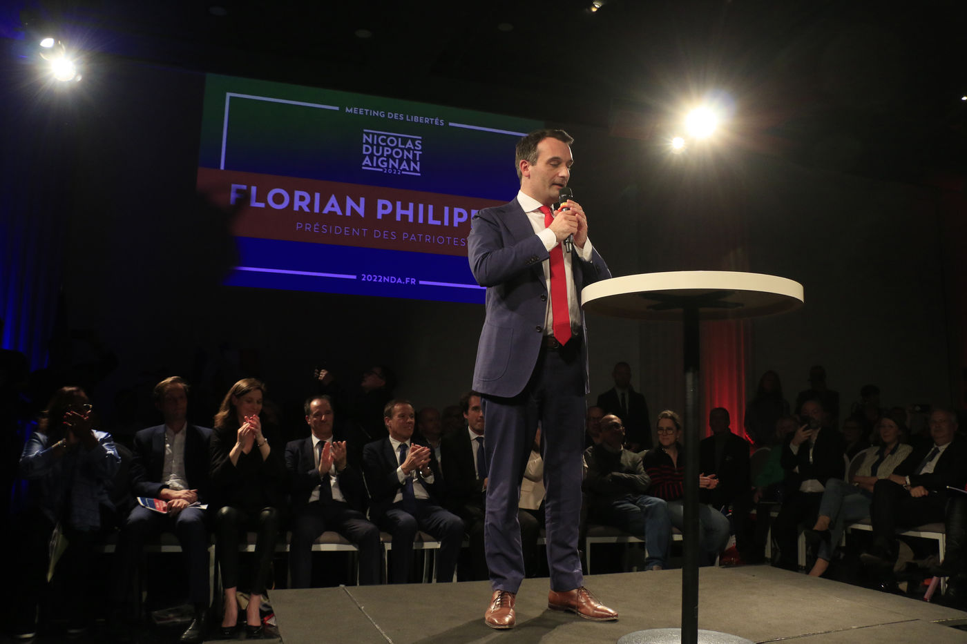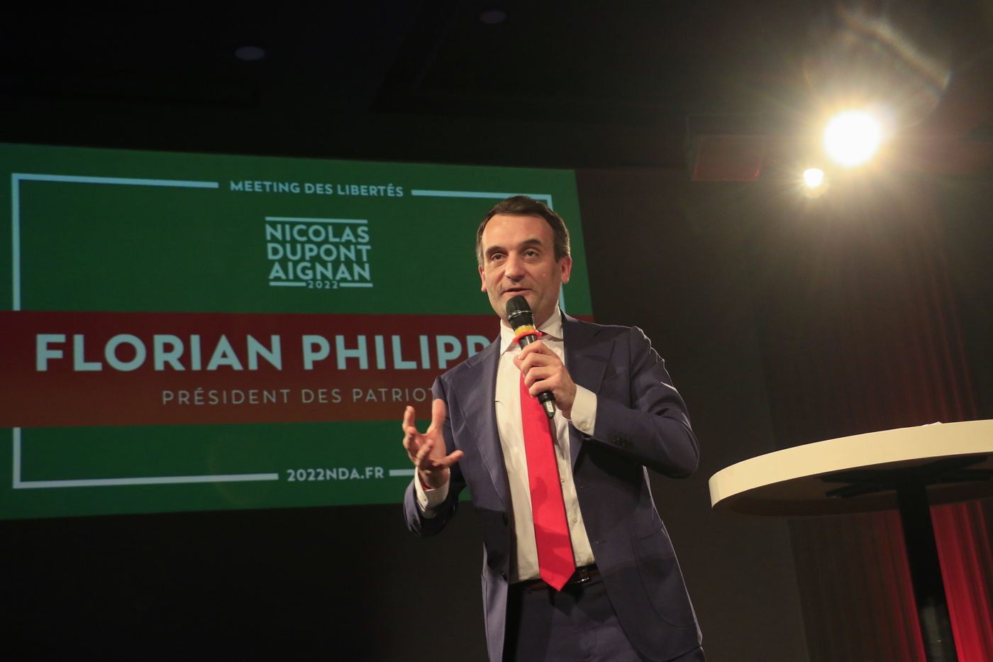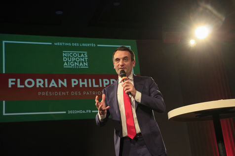 Candidate Nicolas Dupont-Aignan during his last meeting for the 2022 presidential elections.