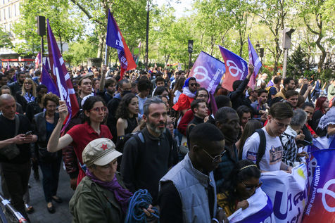 France, Paris, 2022-05-01. The demonstrators marched in the capital for May Day. Photograph by Quentin de Groeve / Hans Lucas