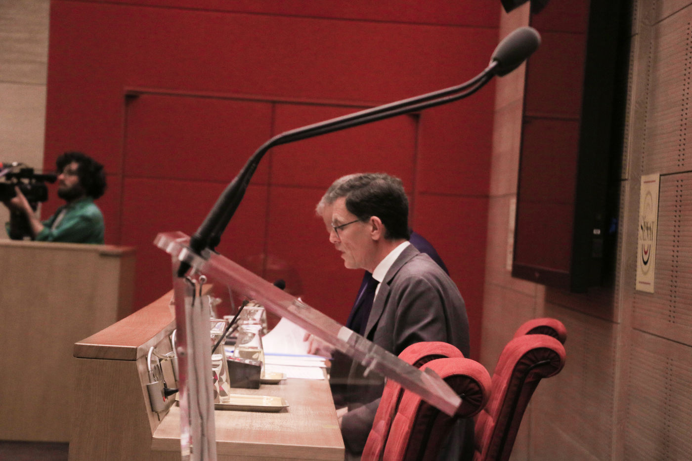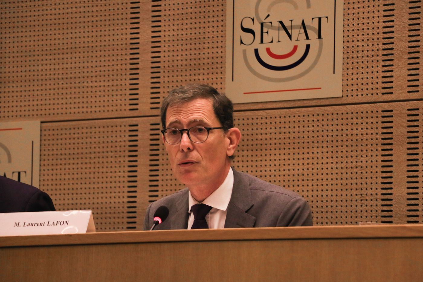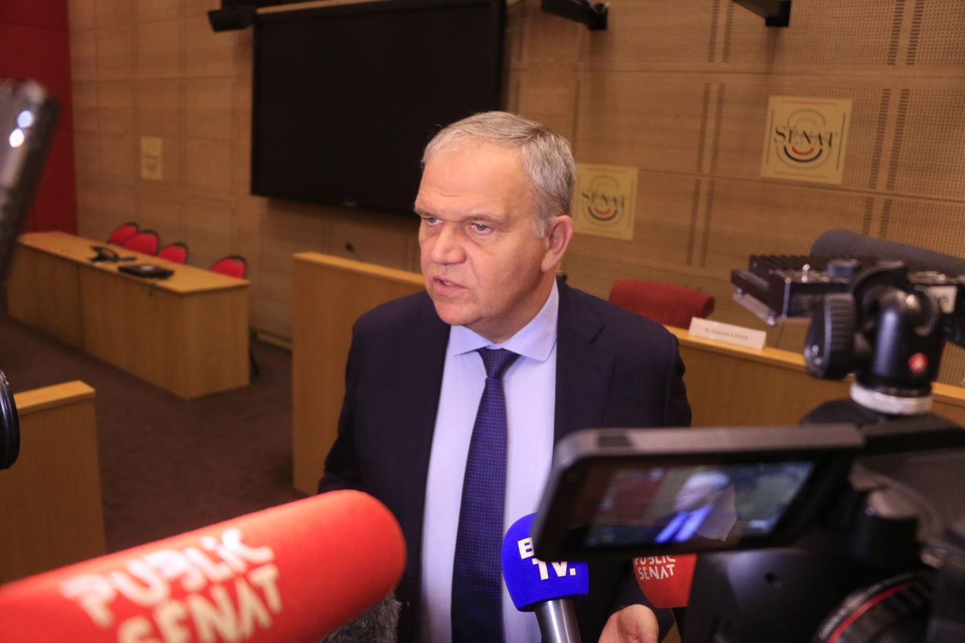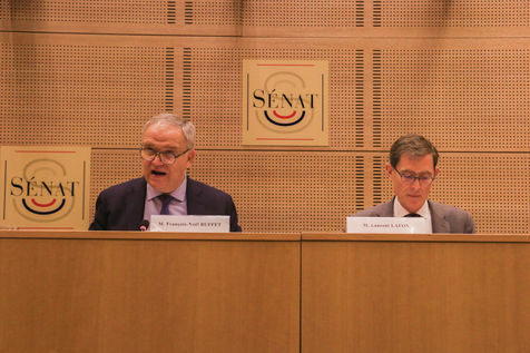 France, 2022-07-13. Francois-Noel Buffet and Laurent Lafon give a press conference for the conclusion of the report on the incidents at the Stade de France. Photograph by Qentin de Groeve / hans Lucas
