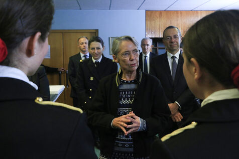 France, Paris, 2022-11-15. Prime Minister Elisabeth Borne during the 50th anniversary of the entry of women into the Ecole Polytechnique. Photograph by Quentin de Groeve / Hans Lucas