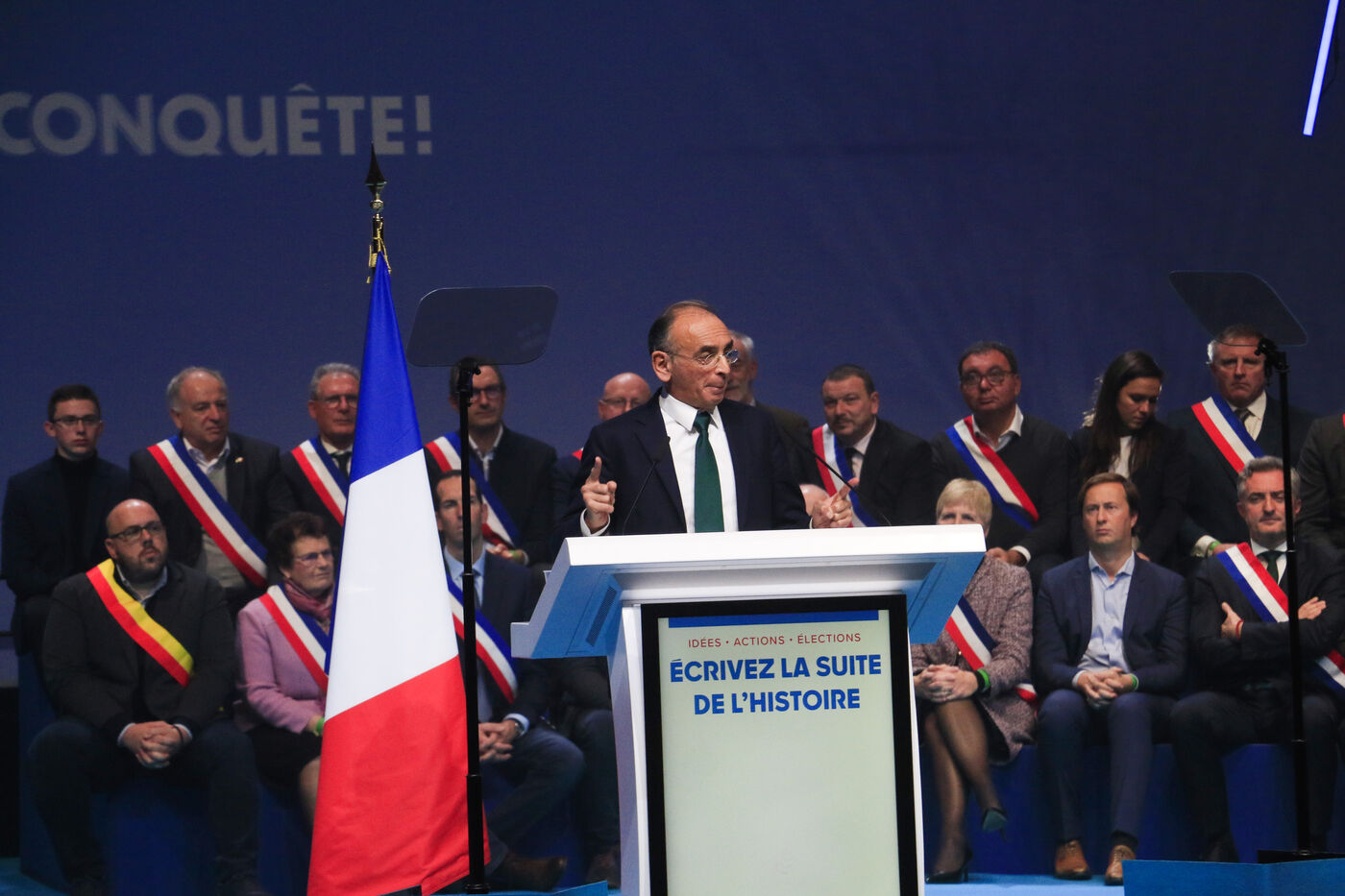 France, Paris, 2022-12-04. Le meeting anniversaire du parti Reconquete. Photographie de Quentin de Groeve / Hans Lucas