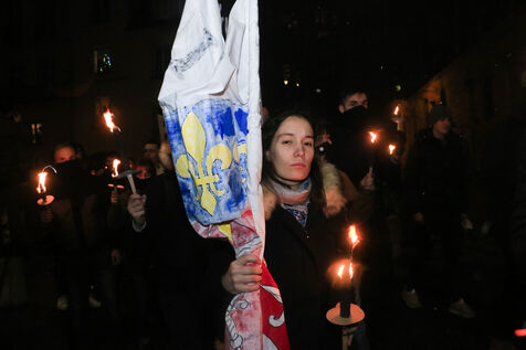France, 2023-01-07. The march organized by Paris Fierte in tribute to Sainte-Genevieve finally took place even though it was initially banned. Photograph by Quentin de Groeve / Hans Lucas