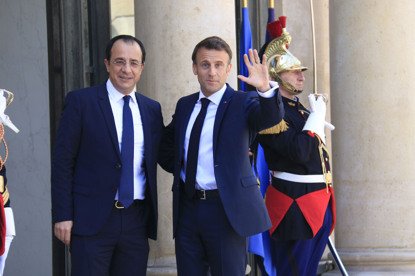Reception of Cyprus president by Emmanuel Macron au Palais de l Elysee