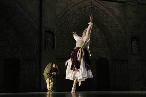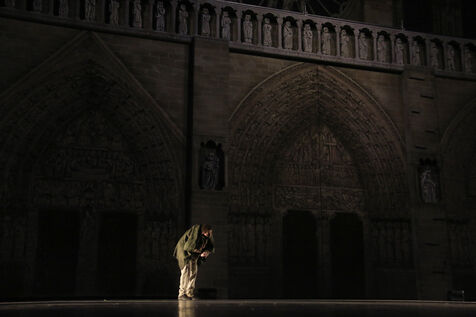 France, Paris, 2023-06-29. Preview of La Dame de Pierre, a show in homage to Notre-Dame de Paris, at the Palais des Congres. Photograph by Quentin de Groeve / Hans Lucas