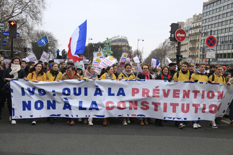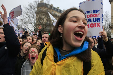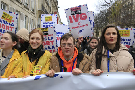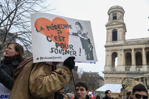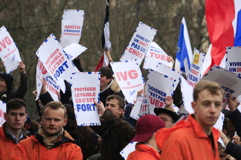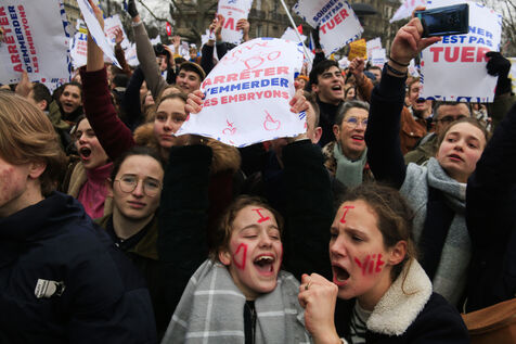 France, Paris, 2024-01-21. De nombreuses personnes se sont réunies lors de la Marche pour la Vie contre l'avortement (IVG) et l'euthanasie. Photographie de Quentin de Groeve / Hans Lucas