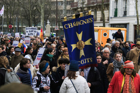 France, Paris, 2024-01-21. Many people gathered during the March for Life against abortion and euthanasia. Photographie de Quentin de Groeve / Hans Lucas