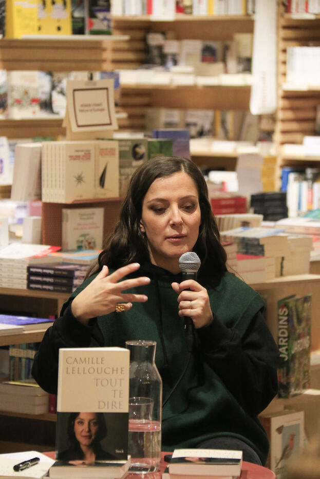 France, Paris, 2024-03-07. Singer Camille Lellouche presents her book Tout te dire dans to the public at the ICI bookstore, a signing session takes place afterwards. Photography by Quentin de Groeve / Hans Lucas