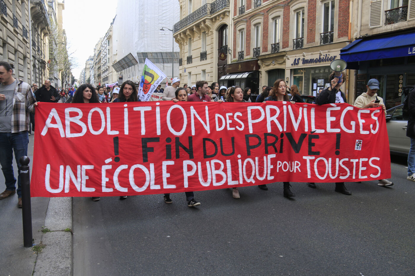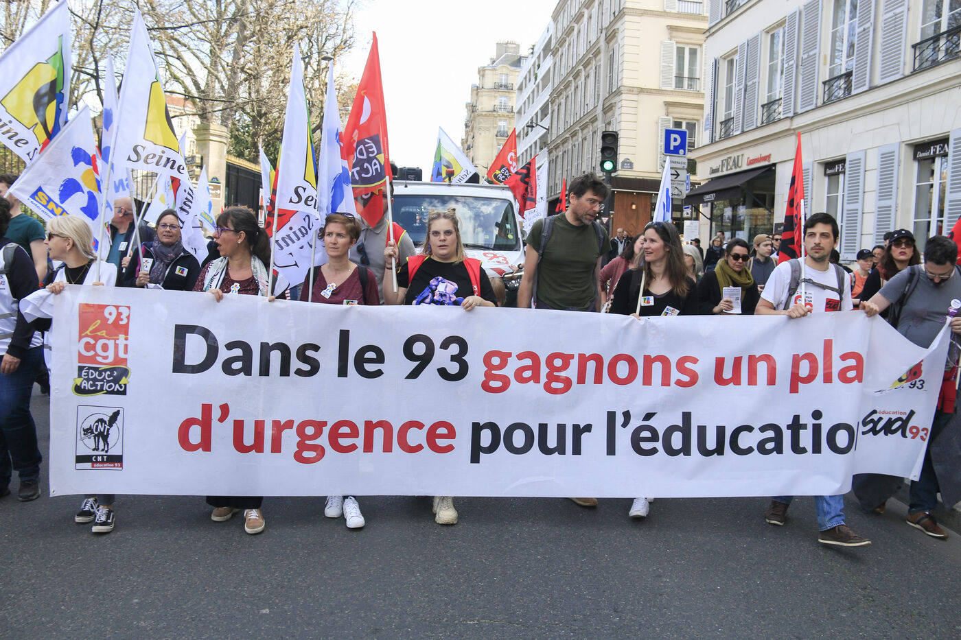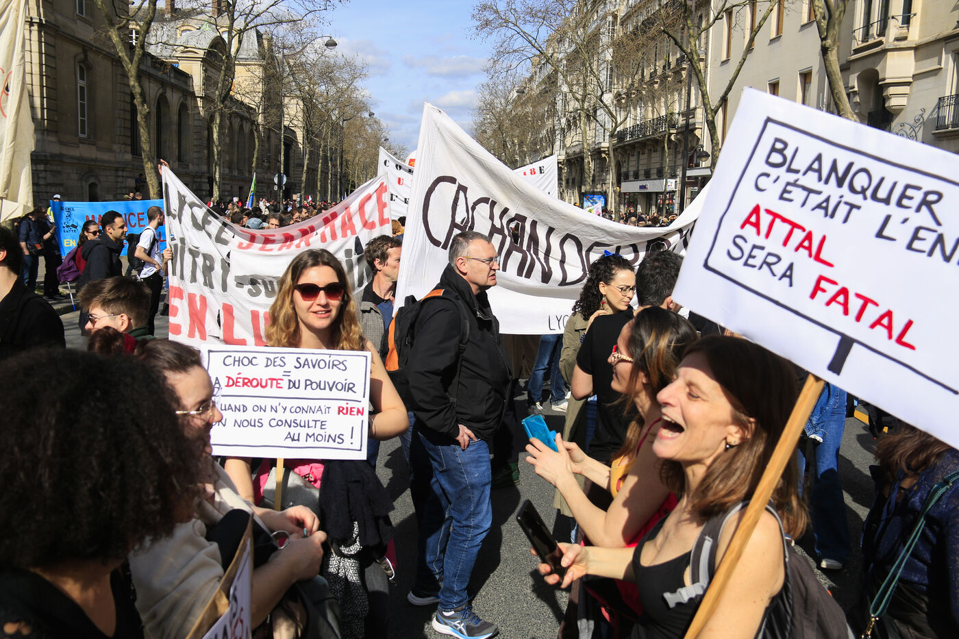 France, Paris, 2024-03-19. De nombreuses personnes ont manifesté dans le cadre de la grève des enseignants au sein de l'Education Nationale. Photographie de Quentin de Groeve / Hans Lucas