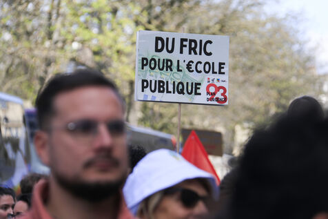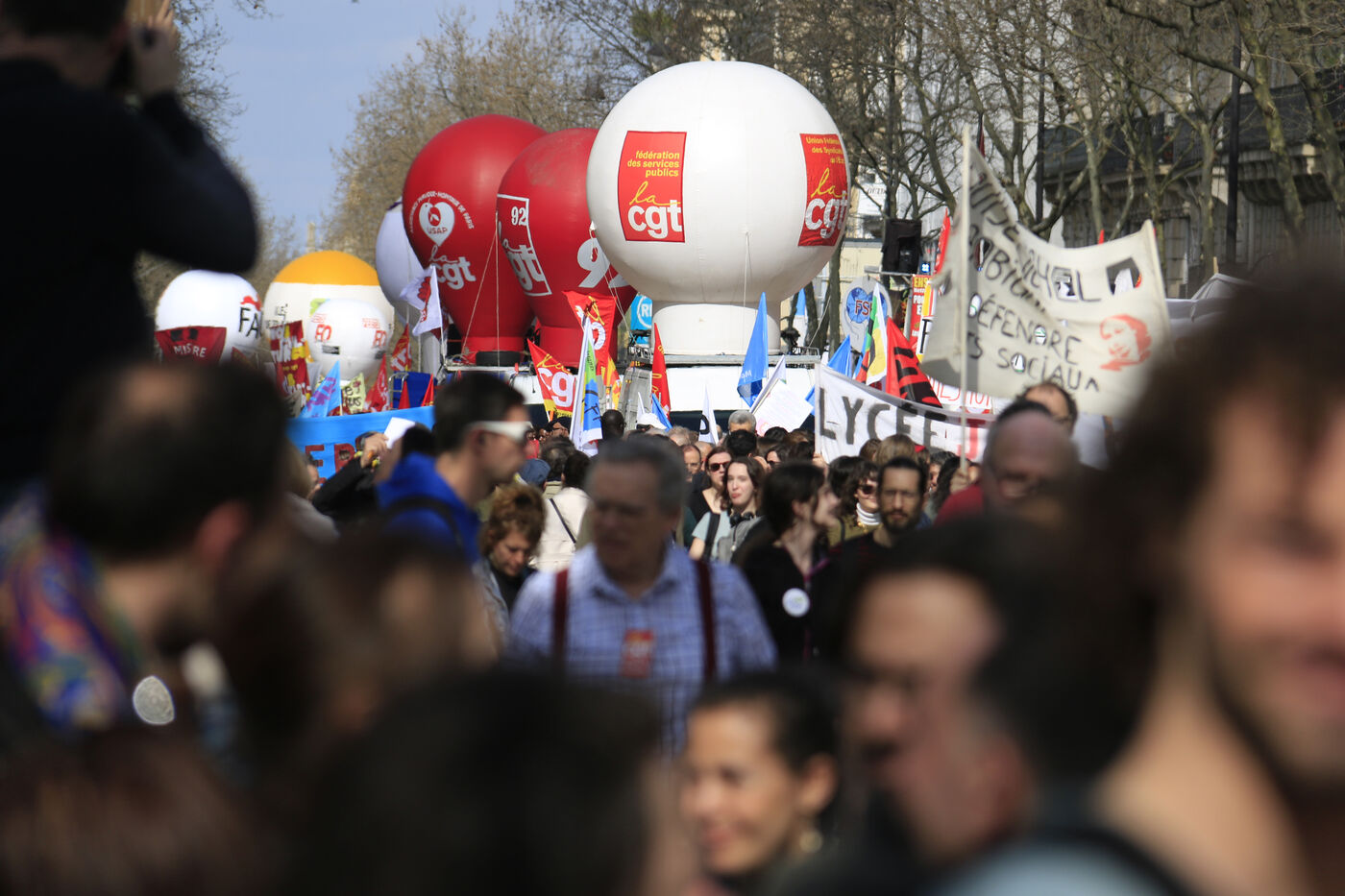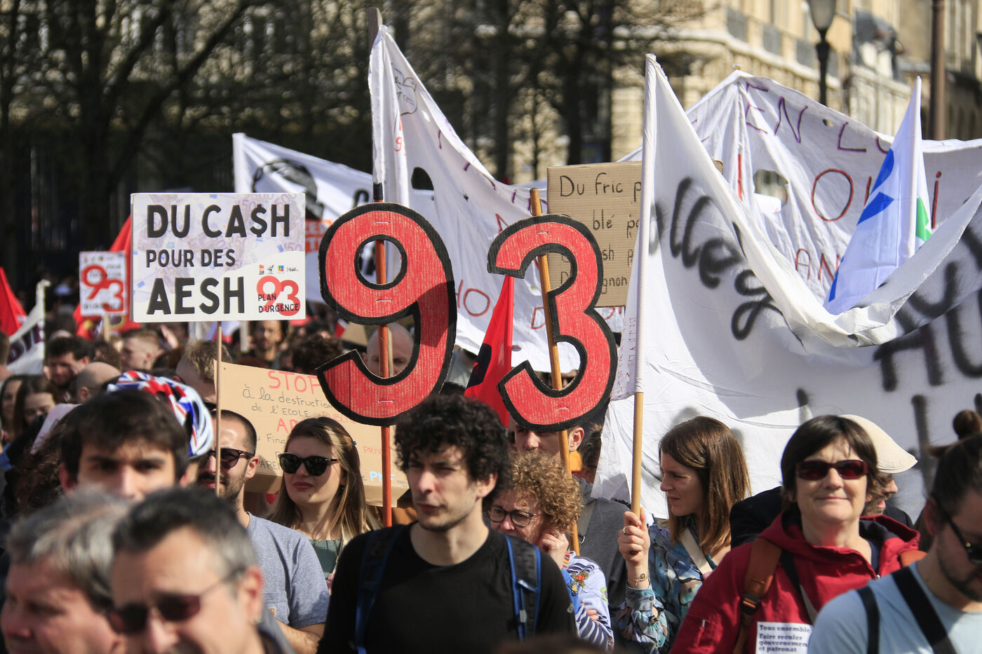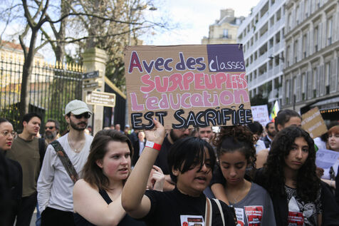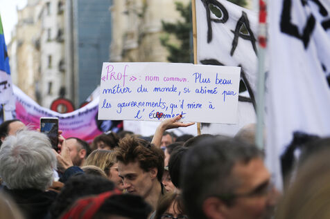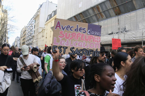 France, Paris, 2024-03-19. De nombreuses personnes ont manifesté dans le cadre de la grève des enseignants au sein de l'Education Nationale. Photographie de Quentin de Groeve / Hans Lucas