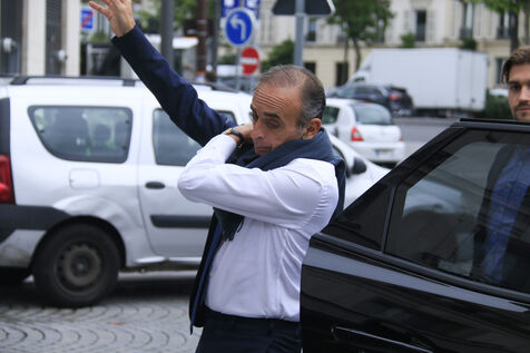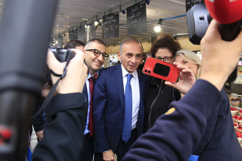Eric Zemmour and Reconquete candidate for the legislative elections Jean Messiha visiting the Neuilly market in Hauts-de-Seine on June 19, 2024.
