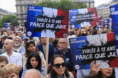 A rally was held against anti-Semitism following the rape of a 12-year-old child because she was Jewish in Courbevoie. Paris, June 19, 2024.