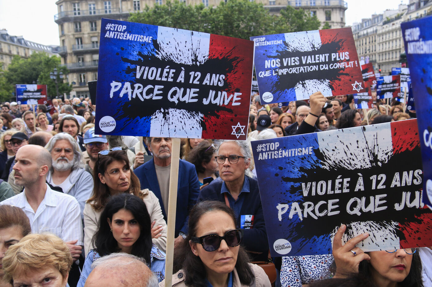 Un rassemblement s'est tenu contre l'antisémitisme suite au viol d'une enfant de 12 ans parce que juive à Courbevoie. Paris, 19 juin 2024.
