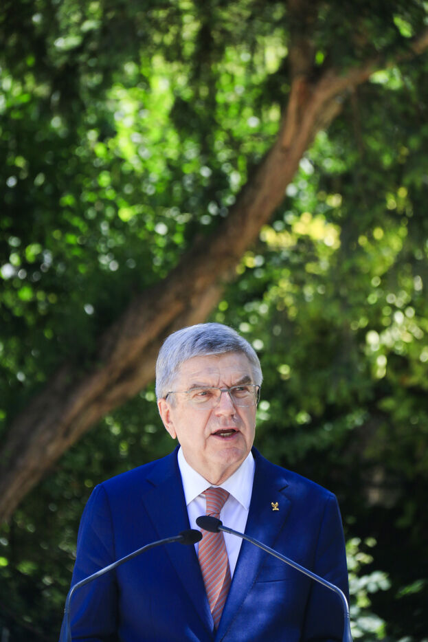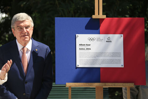 Inauguration of the Olympic work Salon d'Alison Saar at the Jardin Charles Aznavour in Paris in the presence of IOC President Thomas Bach on June 23, 2024.