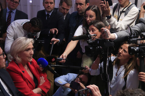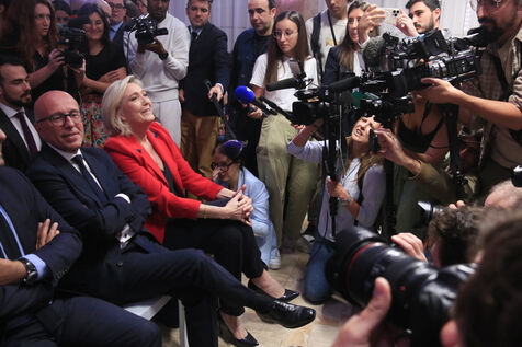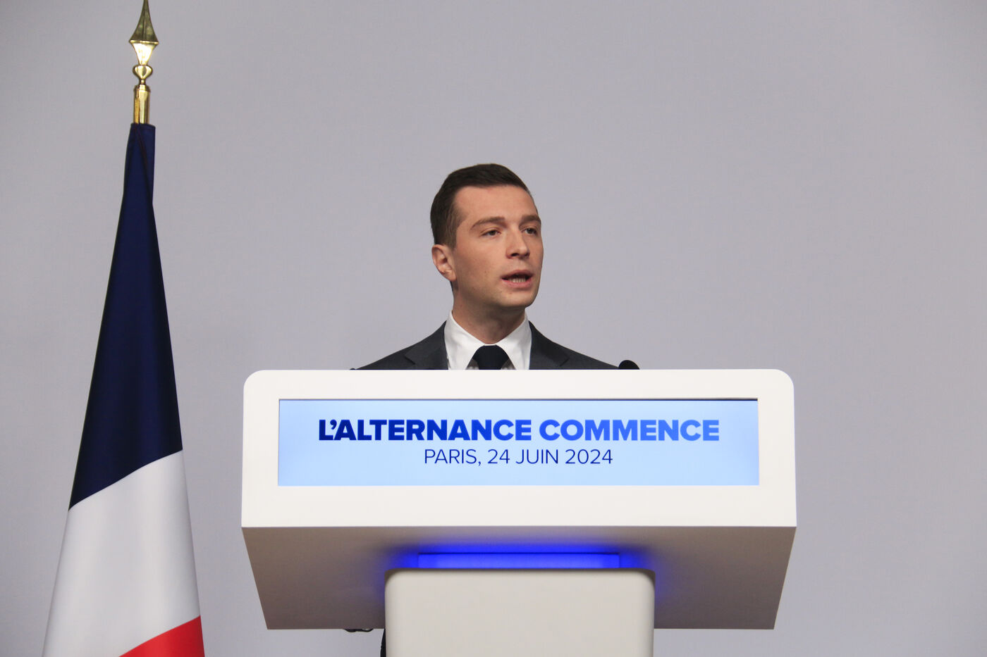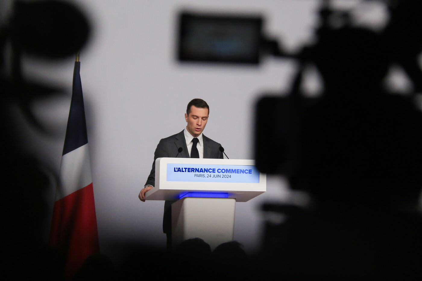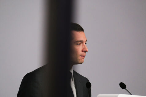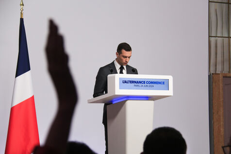 Jordan Bardella presented his program with figures in a press conference as part of the legislative elections in Paris on June 24, 2024.