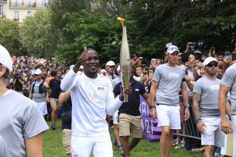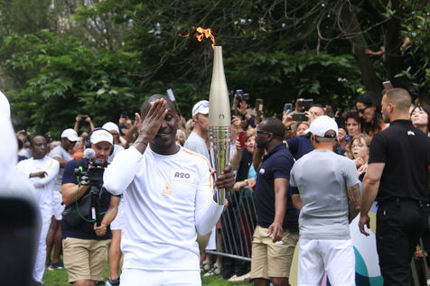 Relais de la flamme olympique au Parc des Buttes-Chaumont à Paris le 15 juillet 2024.