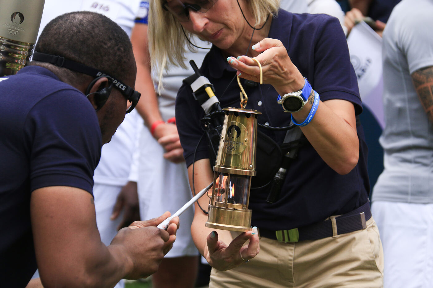 Olympic torch relay at Parc des Buttes-Chaumont in Paris on July 15, 2024.