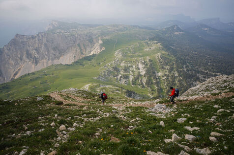 The Grand Veymont, the highest point (2341 metres) of the Vercors massif, is located in the national nature reserve of the Vercors high plateaux. It has an original fauna and flora and offers a breathtaking view, so it is very popular with hikers.