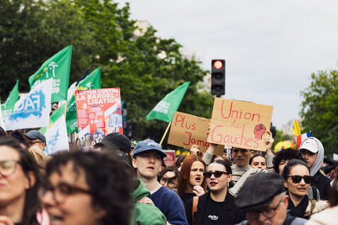 manifestation contre l'extrême droite et pour un nouveau front populaire à l'appel des syndicats nationaux entre la place de la République et la place de la Nation à Paris.