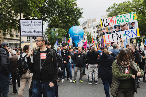 Demonstration against the far right and for a new popular front called by national trade unions between Place de la République and Place de la Nation in Paris.