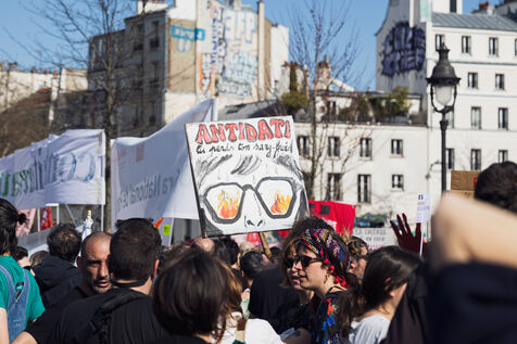 Demonstration by arts and culture unions and collectives against budget cuts in the sector.