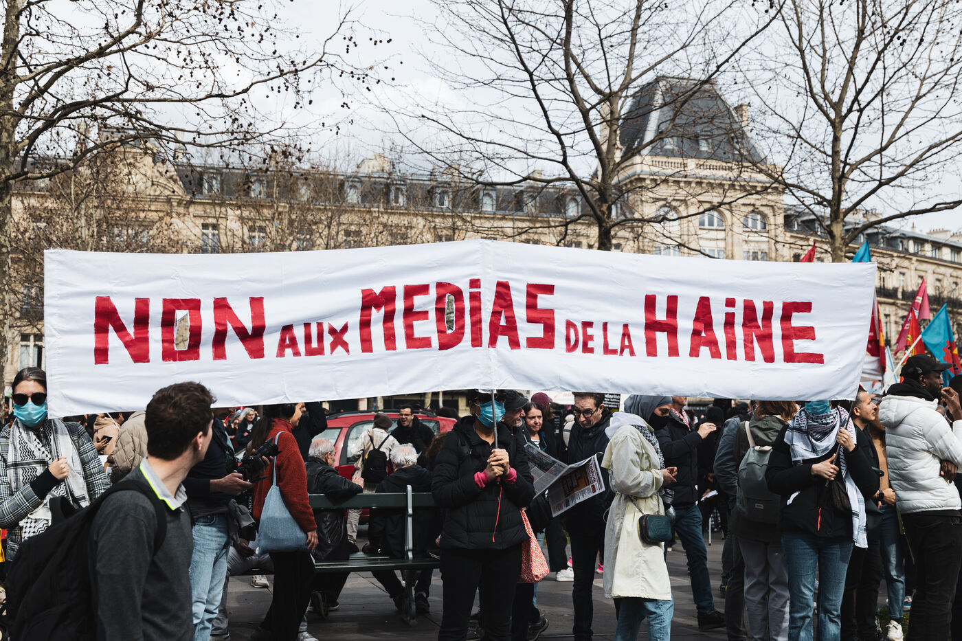 Demonstration against racism, right-wing extremism and all forms of fascism called by trade unions and anti-racist collectives between Place de la République and Place de la Nation in Paris