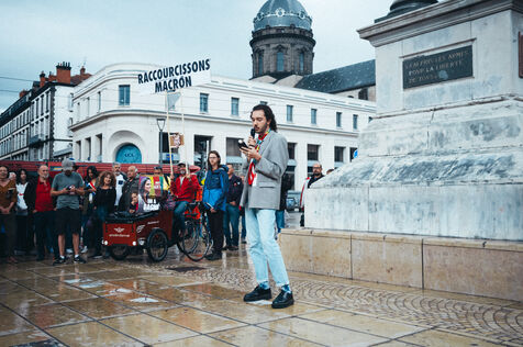 Rassemblement à l'appel de plusieurs organisations de gauche et du NFP (Nouveau Front Populaire) suite à la nomination comme Premier ministre de Michel BARNIER (LR Les Républicains) par Emmanuel MACRON sur la place Jaude a Clermont-Ferrand dans le département de l'Auvergne en France le 7 septembre 2024.