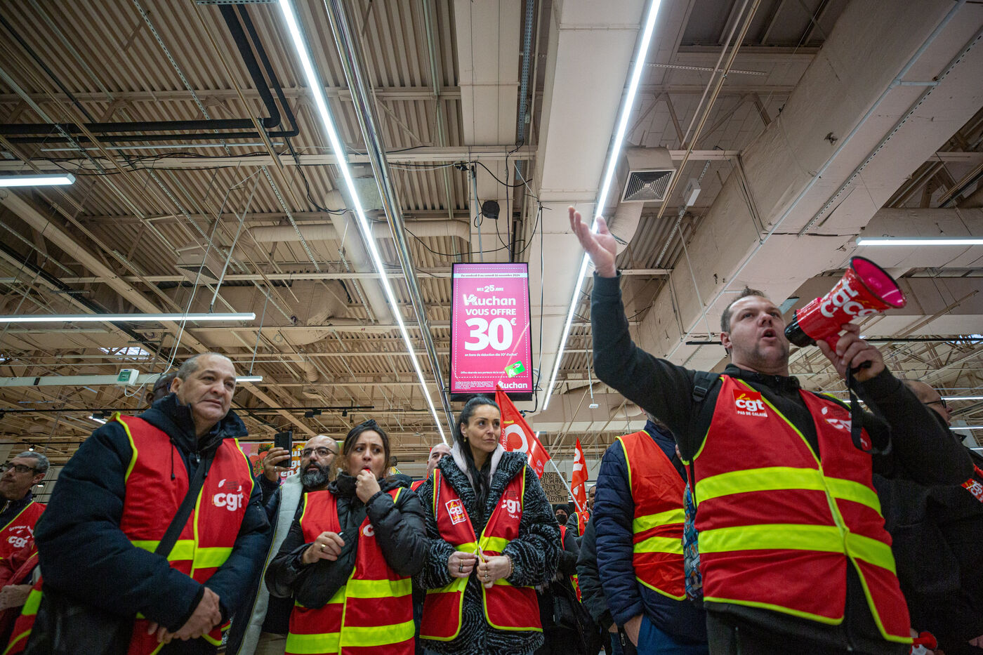 Inter-union rally at the Auchan Nord store in Clermont-Ferrand, following the announcement of the store's closure in six months' time.