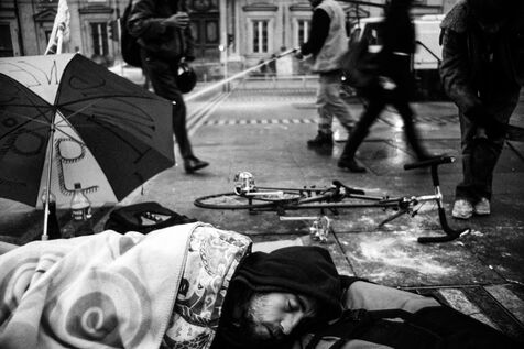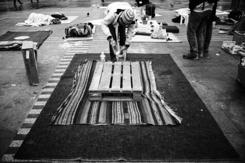 Under pressure from law enforcement, who banned the installation of tents and the use of mattresses, the protesters showed creativity in maintaining their presence. Mattresses were hidden under cardboard, and everyone fought to keep their protest visible. Beyond this material resistance, the occupation evolved into a true space for exchange and solidarity. The discussions and debates that took place there led to the formation of affinity groups—collectives that later organized to open squats in the city, continuing their fight against social injustices.