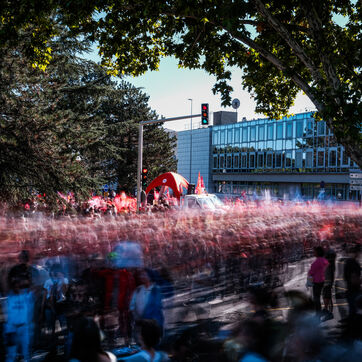 Cette série photographique a été réalisée avec un filtre ND et un temps de pose long, lors d’une journée de mobilisation intersyndicale contre les politiques sociales et économiques du gouvernement, rejointe par le mouvement "Bloquons Tout" à Clermont-Ferrand. En captant le flou des corps en mouvement, les images traduisent visuellement la force collective et la persistance du geste protestataire dans l’espace urbain.