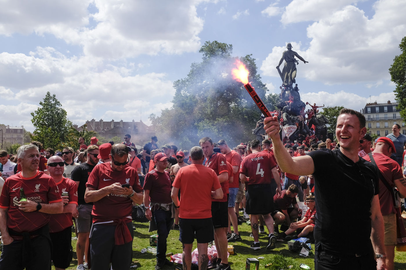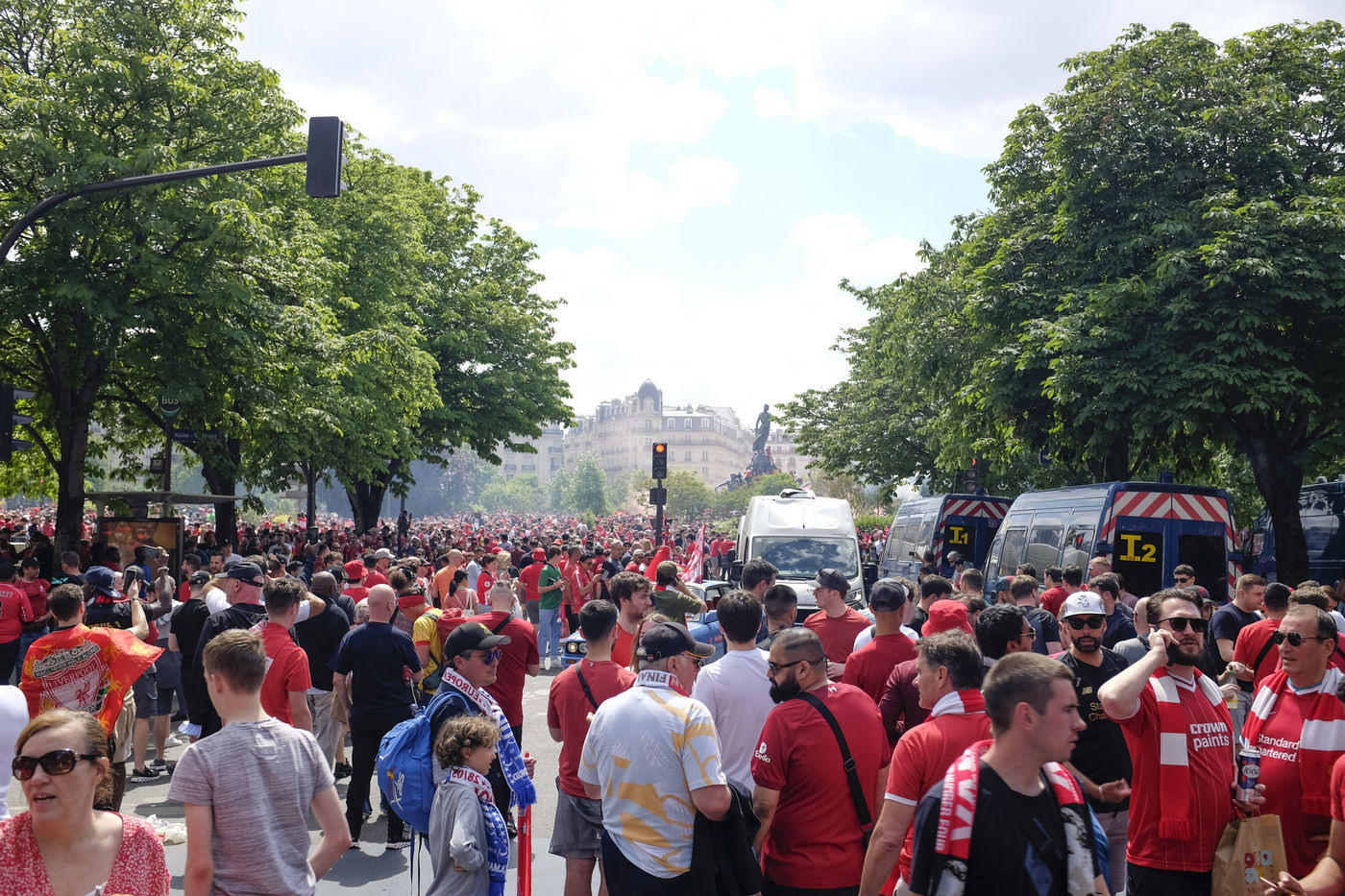 Initially planned in St. Petersburg, the final of the Champions League was finally organized at the Stade de France in Saint-Denis after the beginning of the conflict in Ukraine. Thousands of Liverpool fans were expected in Paris to attend the match in the fan zone installed in the Cours de Vincennes and in the different pubs. The Madrid fans had their fan zone in Saint-Denis near the stadium of France. Very good atmosphere all the afternoon at the place de la nation and cours de Vincennes as well as in the streets around. However, the organization around the stadium france was not the height of the event, many dysfunctions were pointed out by the Liverpool fans and international journalists. Poor management of the flow of supporters and an abusive use of tear gas by the police.