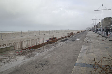 Une nouvelle phase des travaux de consolidation et de rénovation de la dique de la plage de Dunkerque est en cours. Débuté au début de la digue du côté du port et face au nouvel hotal 4 étoiles Radisson Blu. La rénovation est maintenant en cours sur la partie de Malo-les-bains jusqu'au pose de secours.