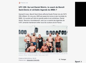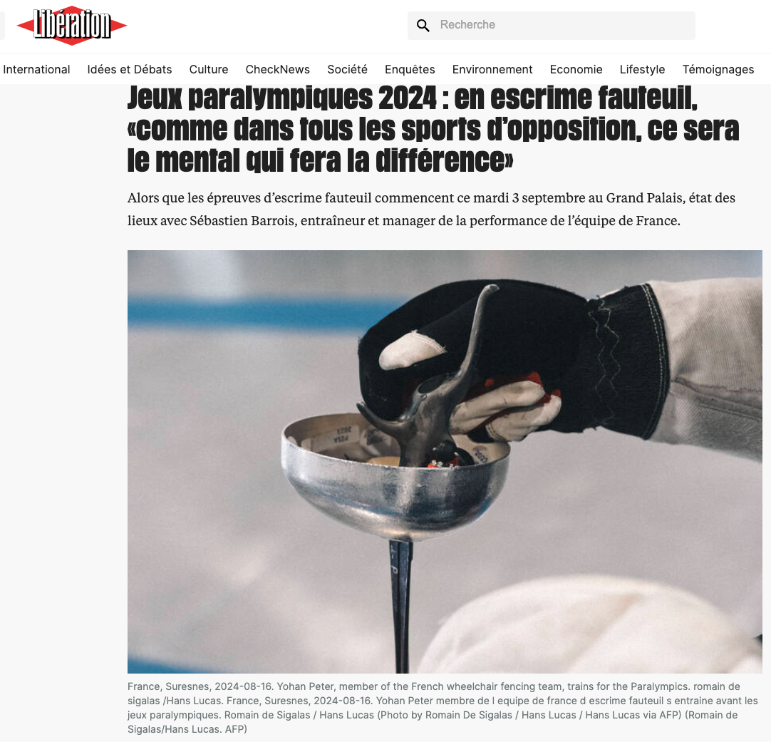 Romain De Sigalas Publications Séries / Archive Paris — Société — Sport Sélection de séries Capital, Glisse La passion du surf déferle sur la France Capital, Glisse La passion du surf déferle sur la France 20minutes.fr, Hippisme : La fin des coups de cravache va-t-elle donner « une meilleure image des courses » ? Les Echos Week-End, COMMENT LE TURF VEUT REVENIR DANS LA COURSE Konbini.com, Pourquoi il n’y aura aucune course hippique ce jeudi en France (et c’est vraiment très rare) ? liberation.fr, Jeux paralympiques 2024 : en escrime fauteuil, «comme dans tous les sports d’opposition, ce sera le mental qui fera la différence» 1jour1actu.com, aux Jeux paralympiques, 11 000 spectateurs ont fait la ola en silence franceinfo.fr, Jeux paralympiques 2024 : qui sont les athlètes des Alpes du Nord engagés à Paris RCF Radio, Yohan Peter membre de l equipe de France de fauteuil escrime s'entraine avant les jeux paralympiques de Paris L Equipe Magazine, Escapade olympique L Equipe Magazine, Escapade olympique L Equipe Magazine, Escapade olympique L Equipe Magazine, Escapade olympique leparisien.fr, Marie-José Pérec encourage les coureurs 20minutes.fr, Marie-Jo Pérec en guest journalisme.com, Prix de la photo de presse 2024 lanouvellerepublique.fr, Selection vote pour la photo de presse 2024 francelive.fr, Qui est Daniel Woirin, le coach de Benoît Saint-Denis et légende de MMA ? franceinfo.fr , ON N ACHETE PAS LE PERSONNEL Figaro Magazine, MMA BENOIT SAINT DENIS