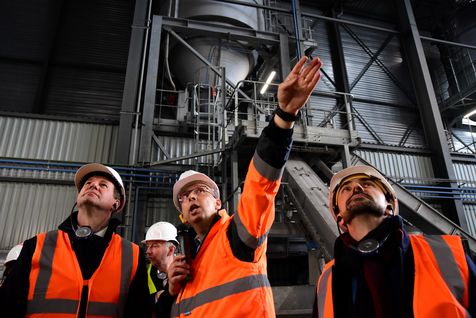 Yannick Jadot candidat Europe Ecologie Les Verts à la présidentielle, visite la chaufferie Biomasse de Surville.