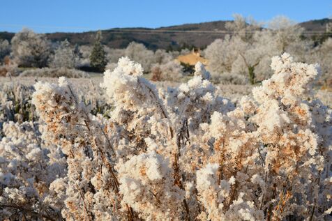 France, Maclas, 2025/01/01. Froid extreme dans le parc naturel du Mont Pilat, Loire. Terre agricole et givre. Photographie de Romain Doucelin / Hans Lucas.