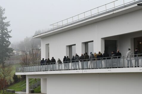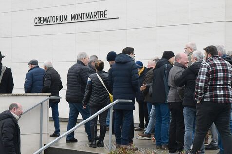 France, Saint Etienne, 2025/01/03. Exclusive, funeral of the SNCF driver, Mr Bruno Rejony, at the Montmartre crematorium. Photograph by Romain Doucelin / Hans Lucas.