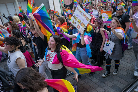 Festive march against homophobic and transphobic discrimination against members of the LGBTQIA+ community.