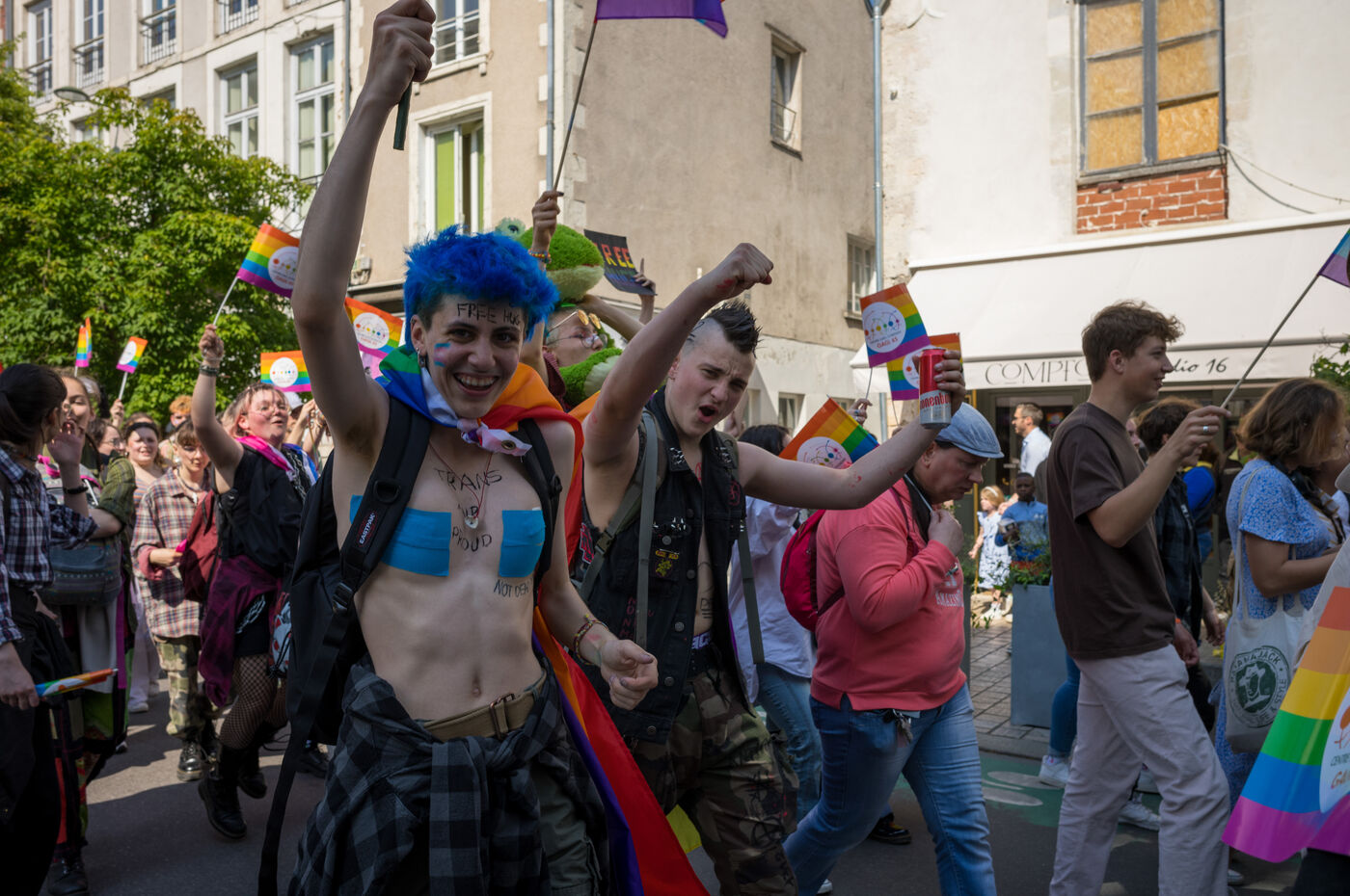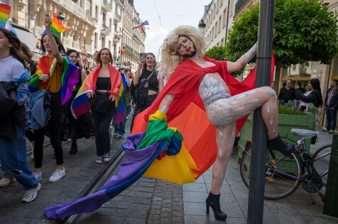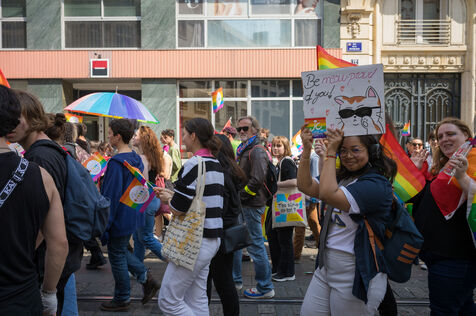 Marche festive contre les discriminations homophobes et transphobes dont sont victimes les membres de la communauté LGBTQIA+.