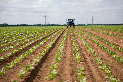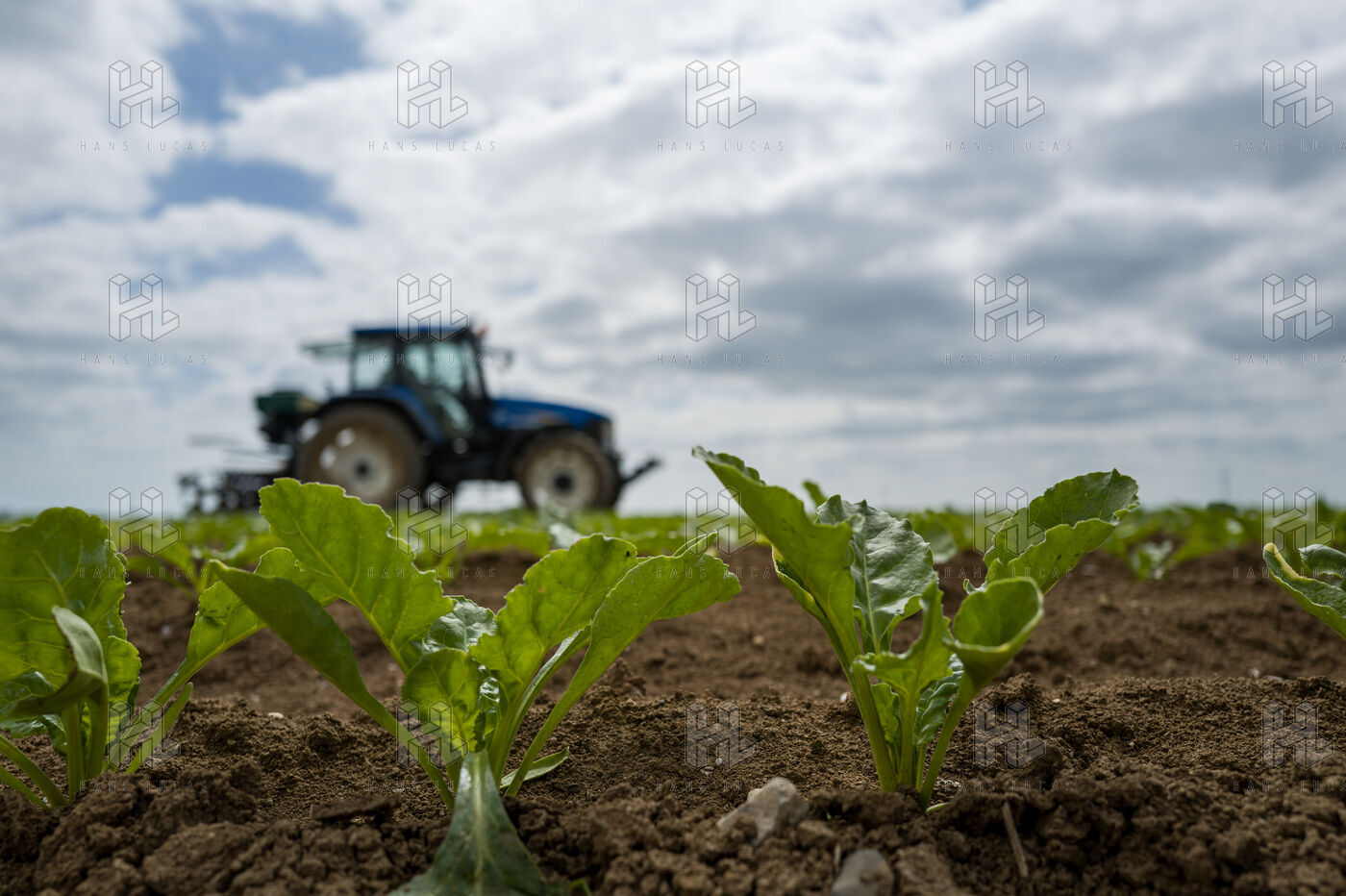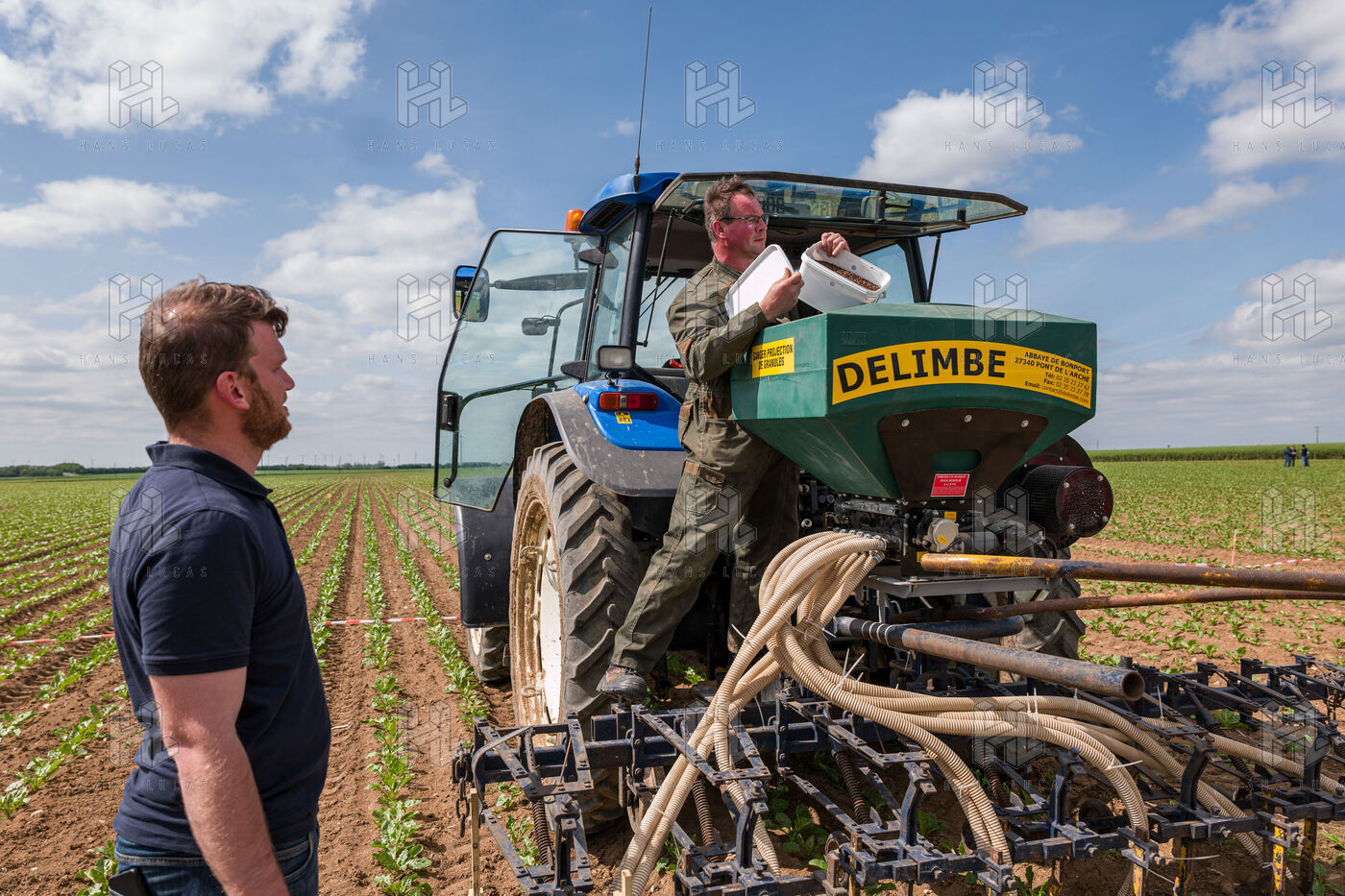 Ependage de larves de chrysopes dans un champ de betteraves pour lutter contre la proliferation de pucerons qui peuvent transmettre le virus de la jaunisse de la betterave à Merouville dans le cadre du PNRI, plan national de recherche et d innovation.