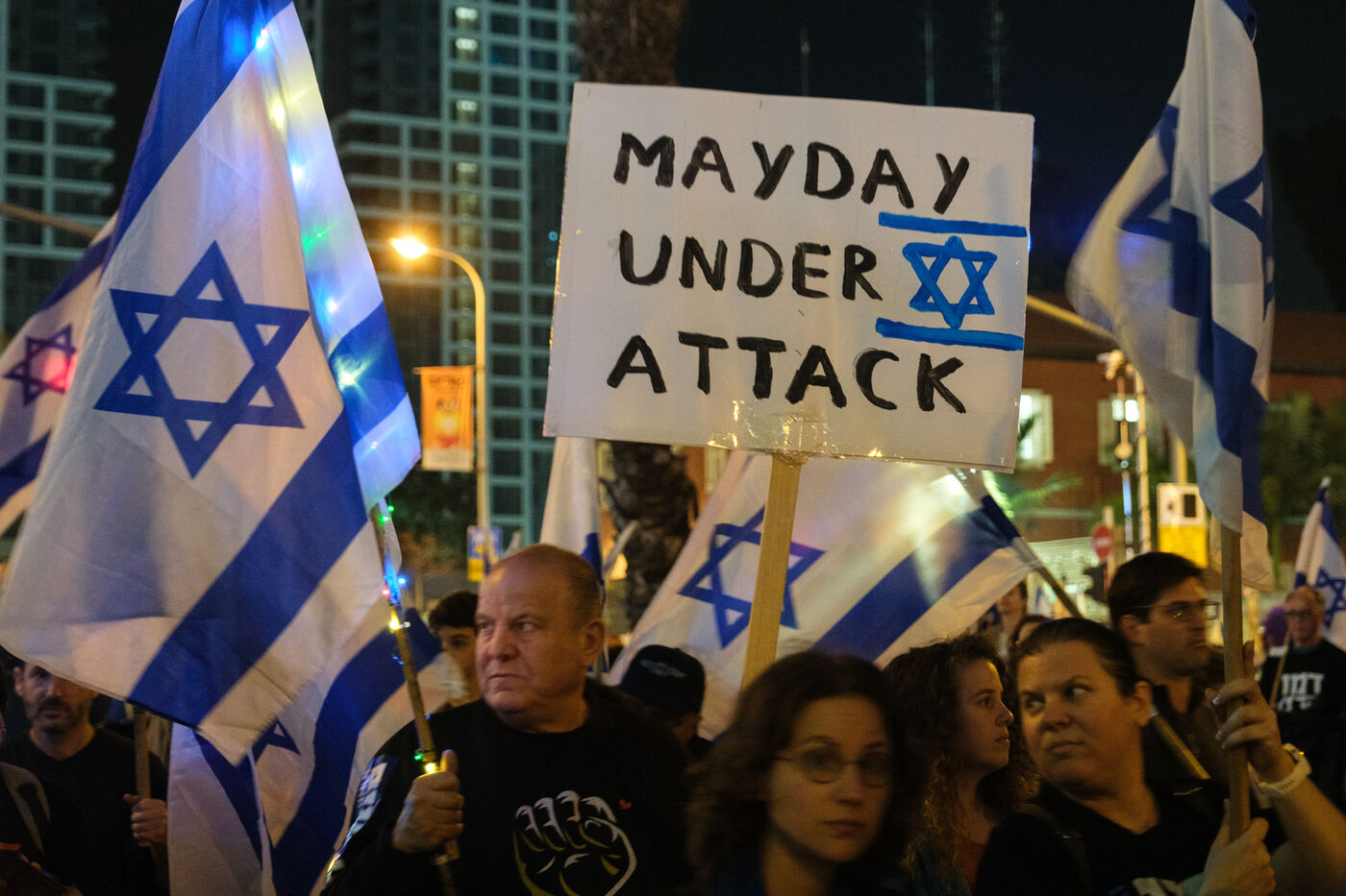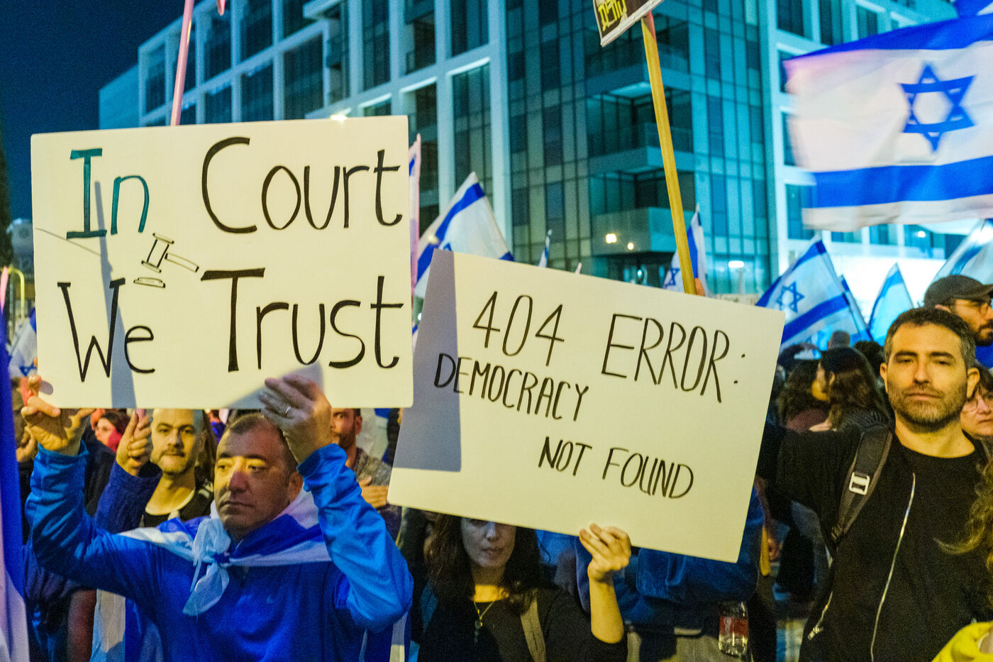 Next to Azrieli Towers, many Israeli citizens have been demonstrating for several weeks against the Prime Minister's reform of the justice system.