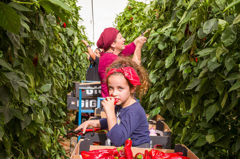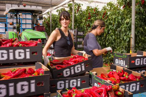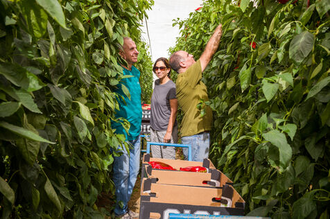 Hier c'était des aubergines, aujourd'hui ils récoltent des poivrons.