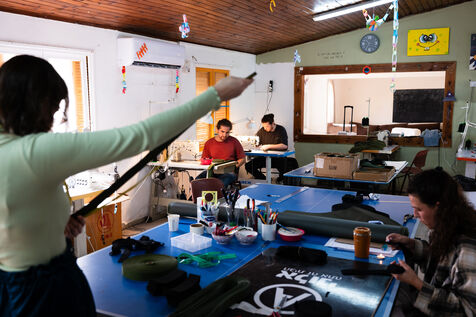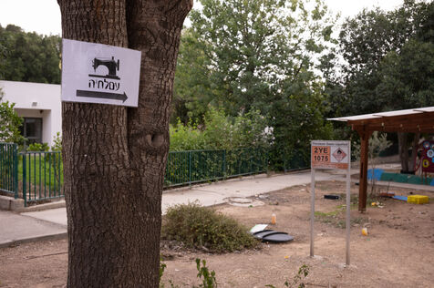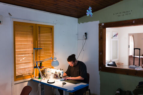 At kibbutz Bror Khayil, the youth center has been modified into a sewing place.